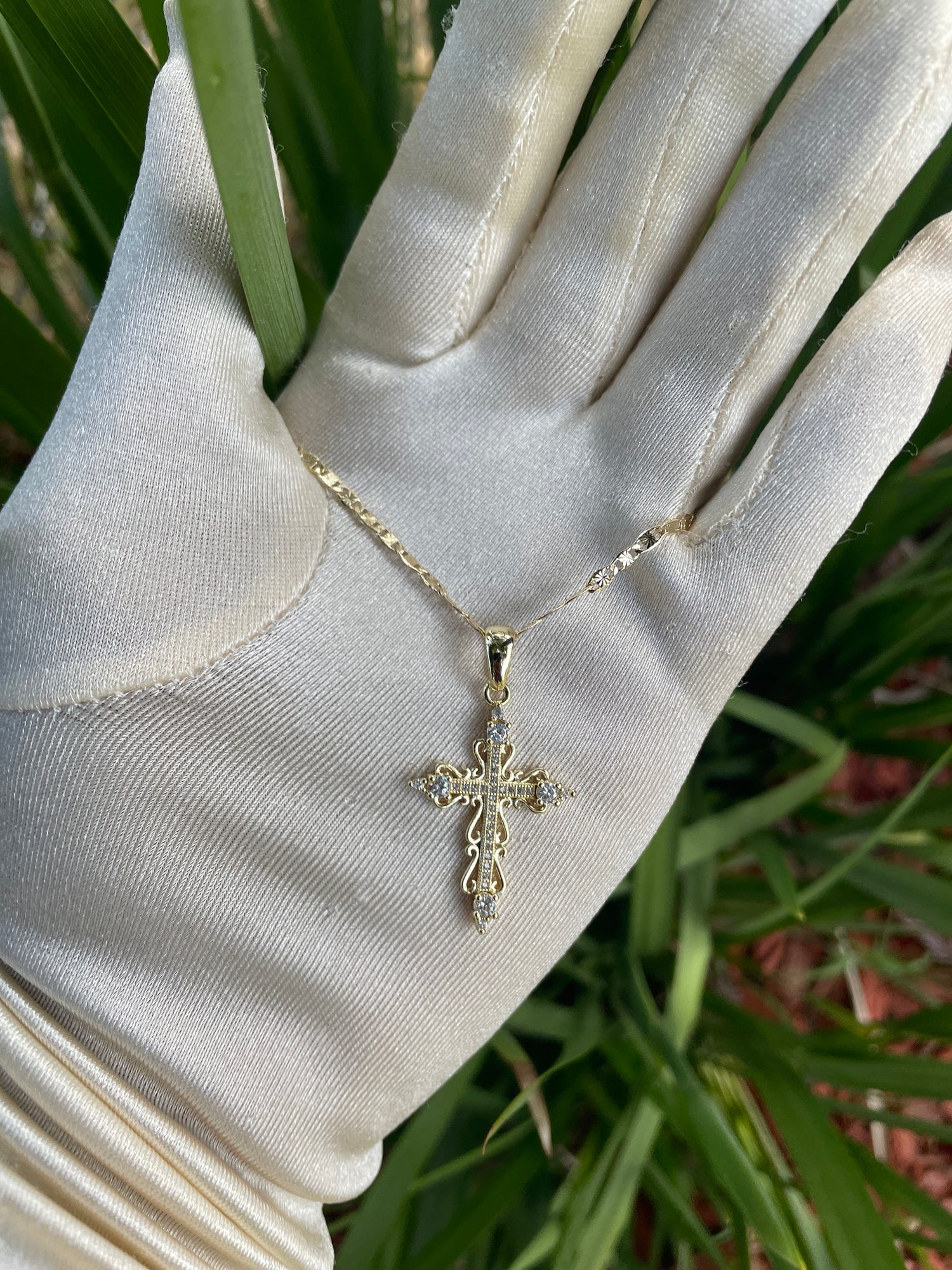 Golden Crystal Cross Necklace